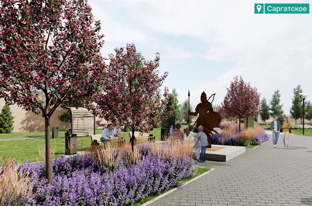 В ходе благоустройства на месте пустыря появится парк с разными функциональными зонами, где каждая деталь свяжет саргатцев с их прошлым. Главную аллею украсят арт-объект в виде война-саргата и высаженные яблони Недзвецкого, которые цветут в Сибири каждую весну.